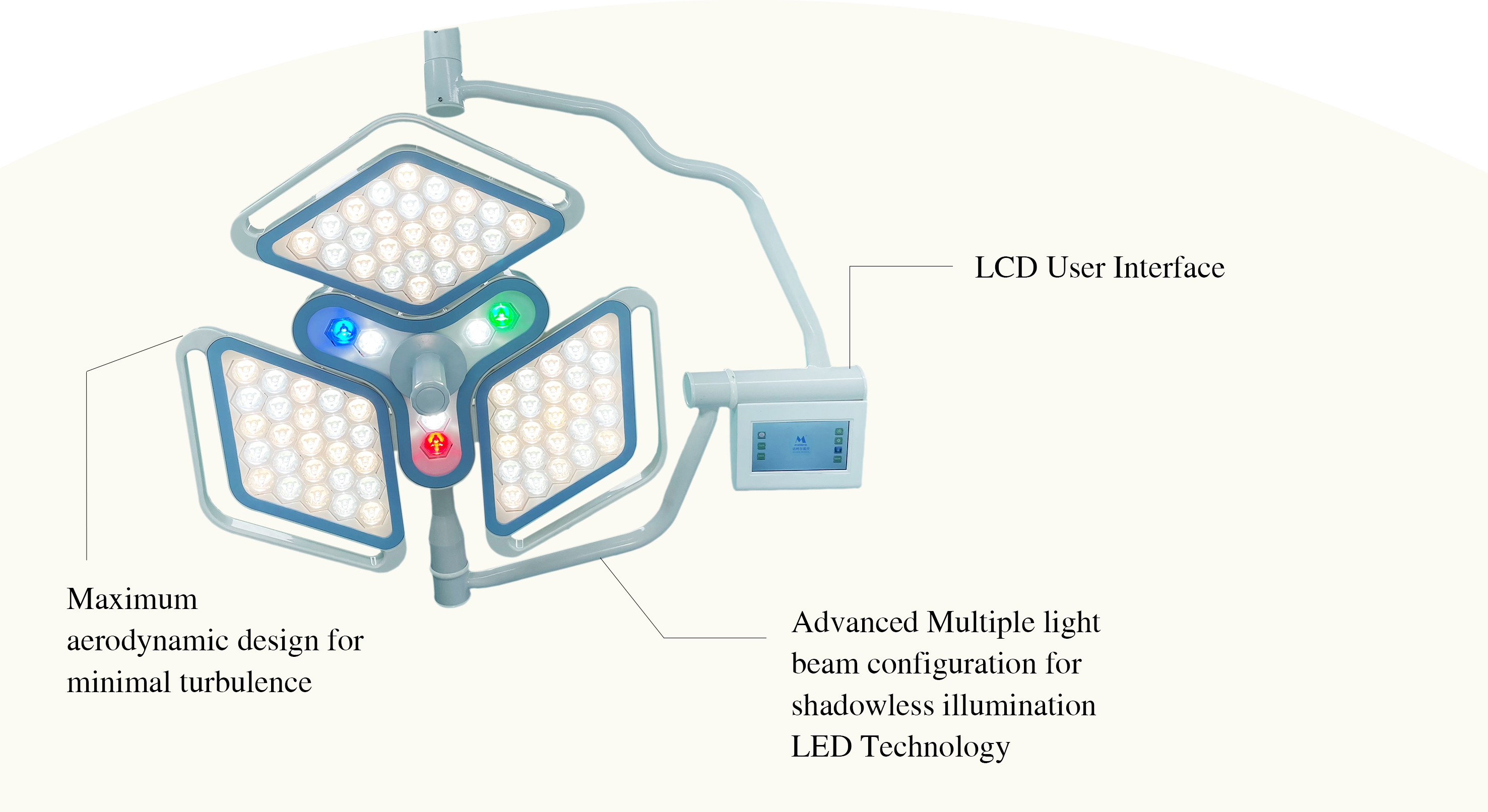 · High quality LEDs · Active Shadow Management · Perfect and Even illumination